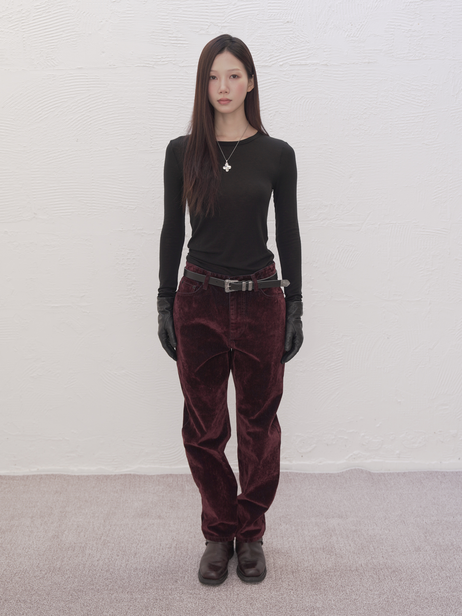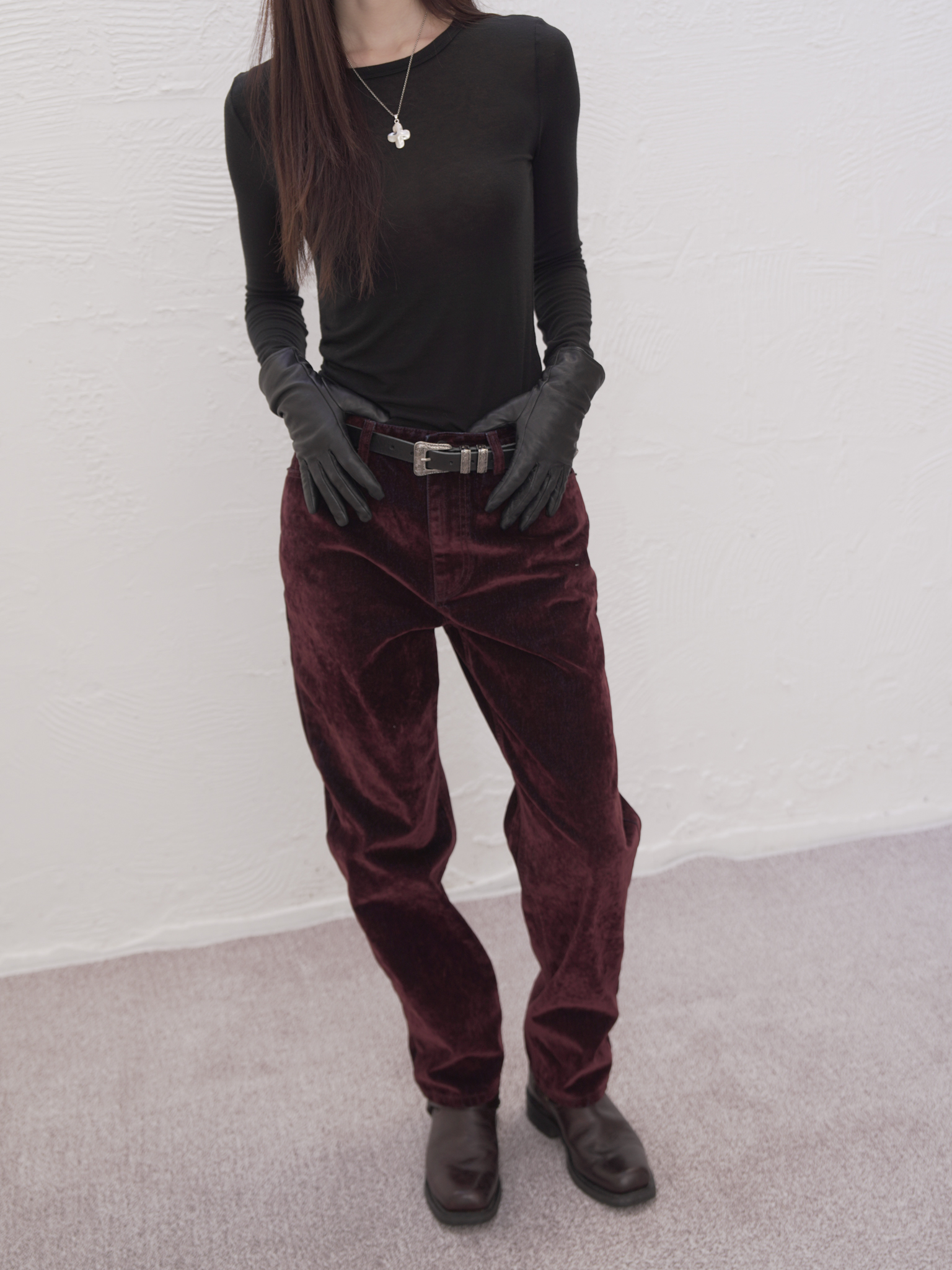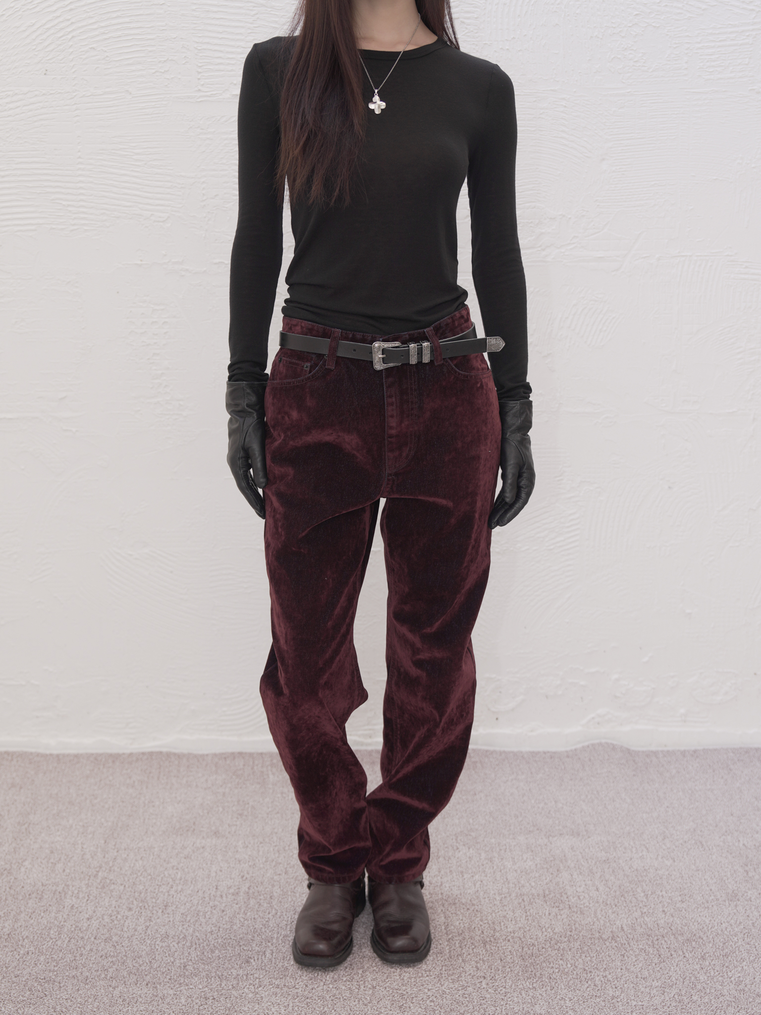 ARTIST WASHED VELVET DENIM PANTS (BURGUNDY)