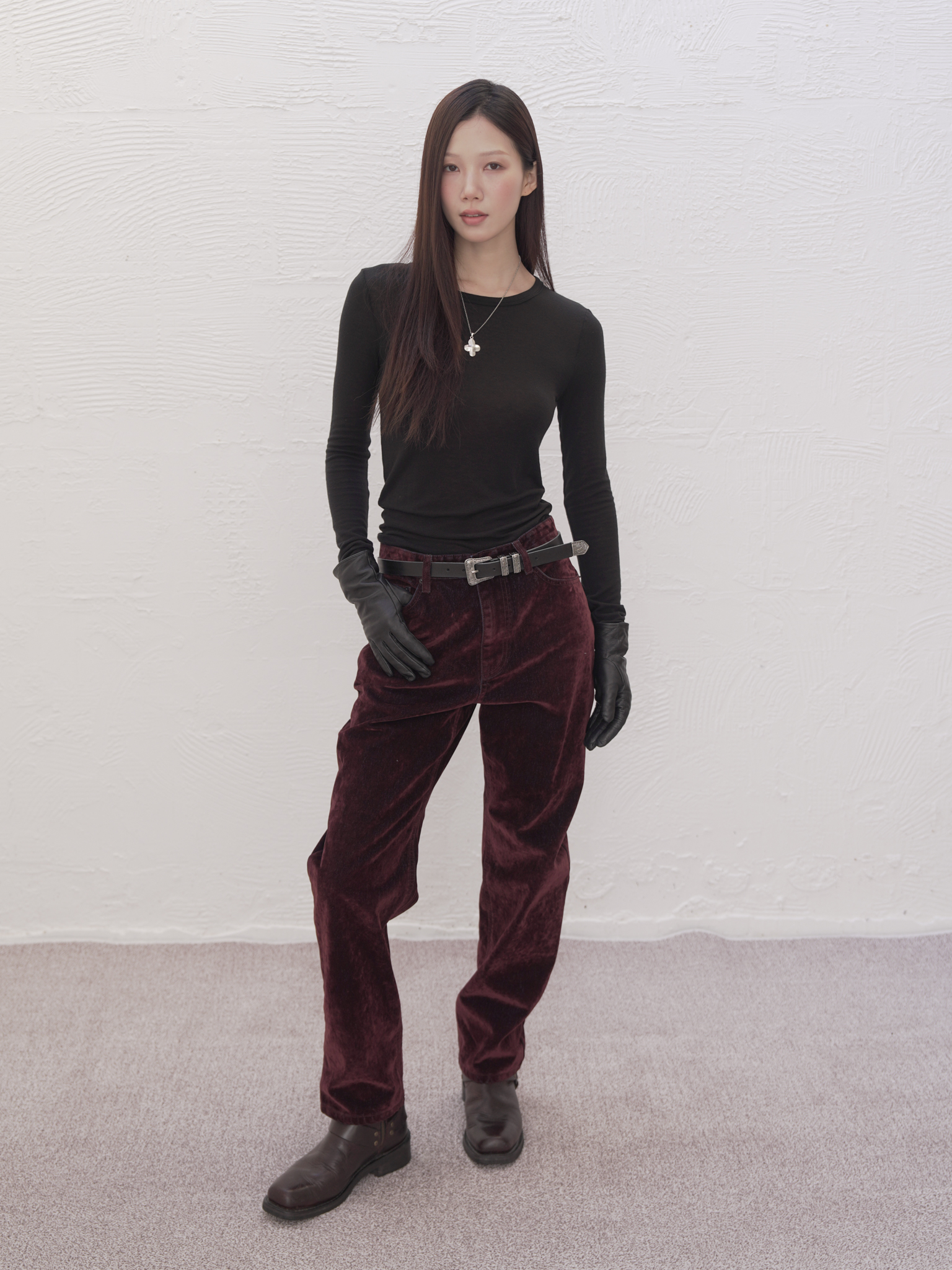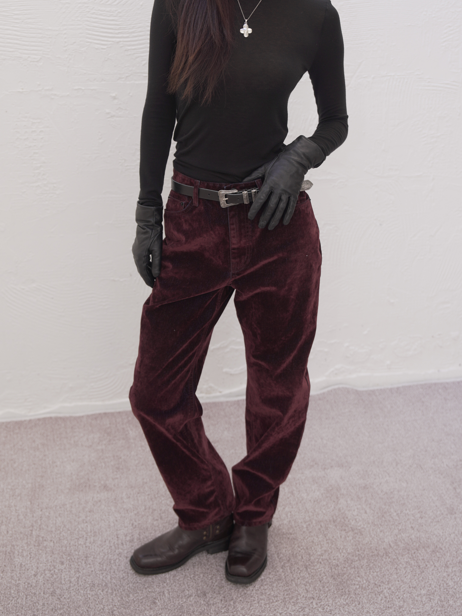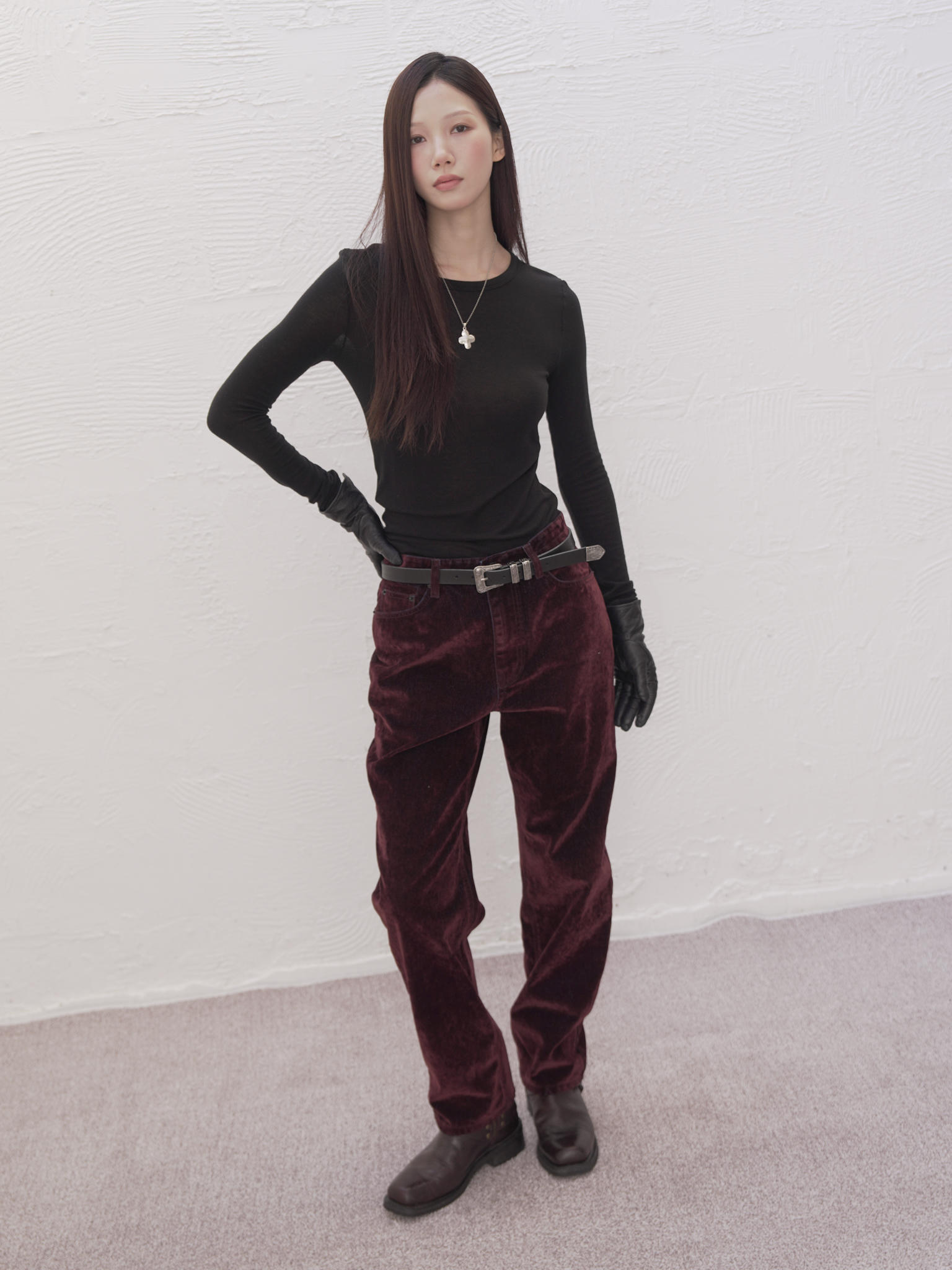 ARTIST WASHED VELVET DENIM PANTS (BURGUNDY)